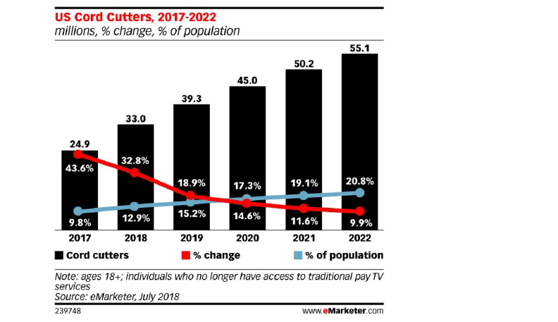 Cord-Cutting Keeps Churning: U.S. Pay-TV Cancelers to Hit 33 Million in 2018 (Study)