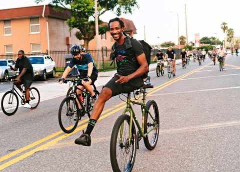 Leo Rodgers is in flight. He’s bouncing and sliding in soft sand along an abandoned railway line that runs north from downtown St. Petersburg. As we zigzag past castaway boxcars plastered with graffiti and the agitated guests at a dog kennel, Rodgers hucks his bike off every huckable curb.