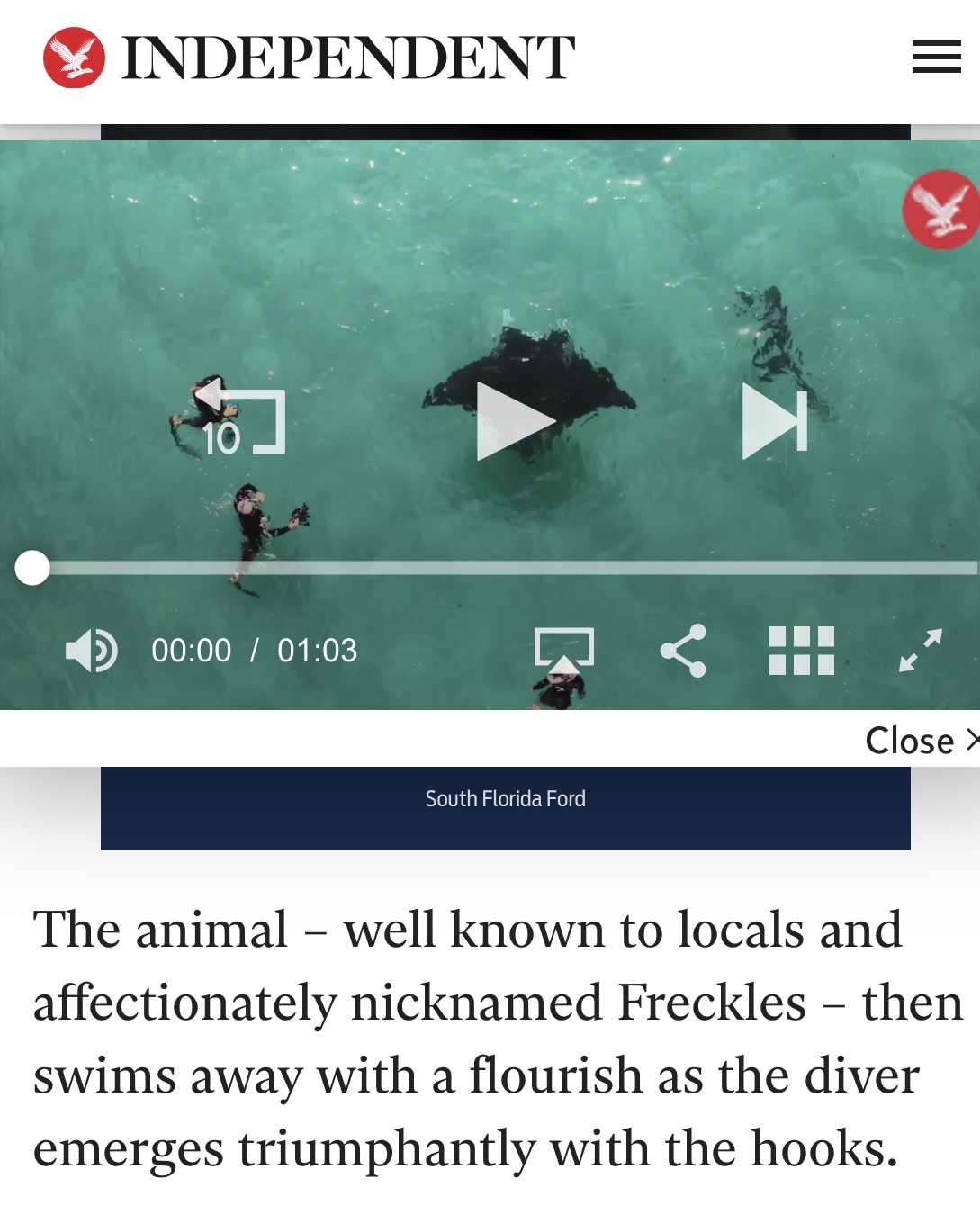 A giant manta ray has been filmed appearing to beg a professional diver for help saving her life. The three-metre-wide sea creature is shown swimming up to snorkelling guide Jake Wilton and flipping over in the water β apparently to show him fish hooks embedded in her right eye.