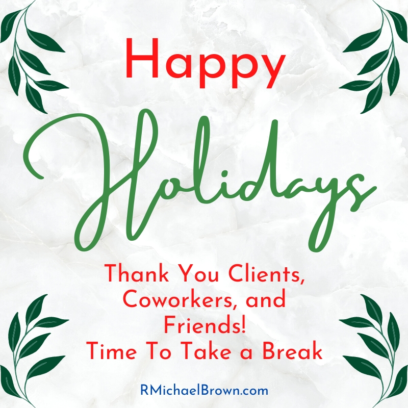 We will be closed Christmas weekend and New Years weekend but as always, if you have a crisis, you can contact me at Mike@RMichaelBrown.com.