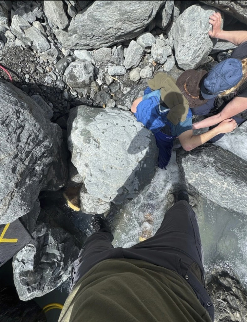 His second stroke of luck came when a sled dog tourism company that operates on the glacier overheard the 911 dispatch and offered up its helicopter to ferry rescuers to the scene, which was inaccessible to all-terrain vehicles.